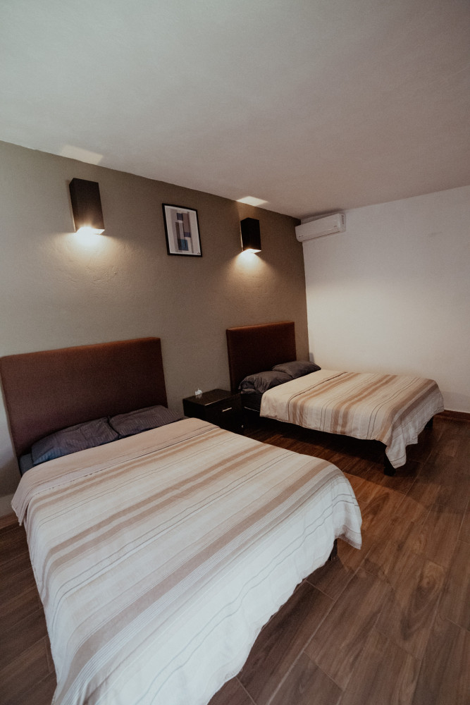 Cuenta con 2 habitaciones para pasar la noche; una con cama king size y otra con dos camas matrimoniales.