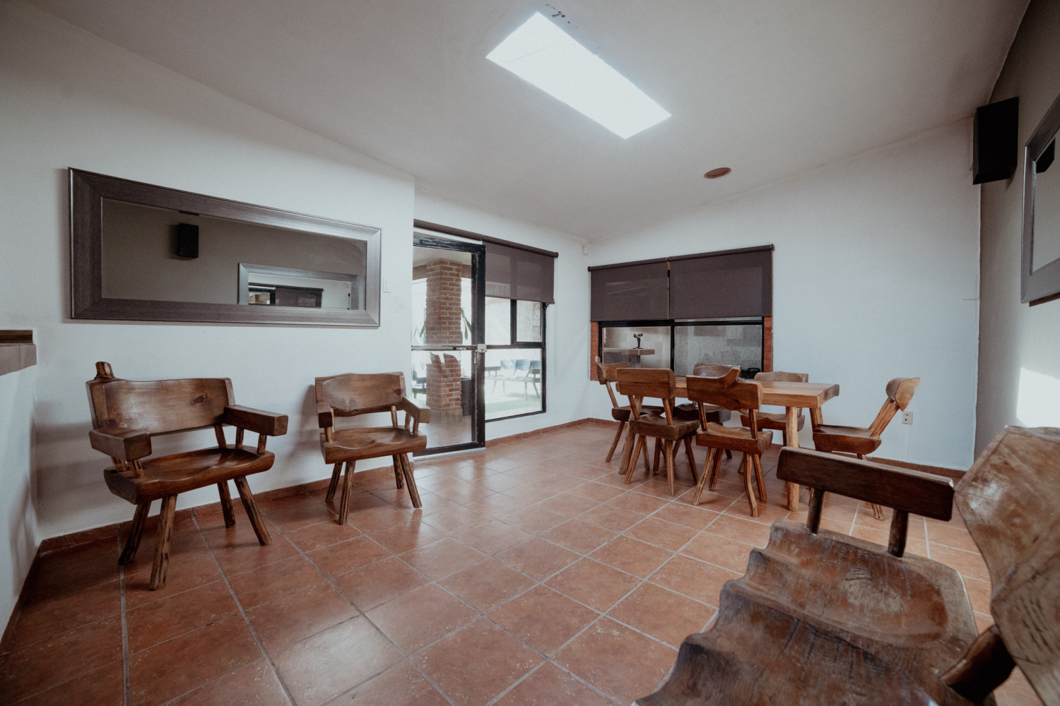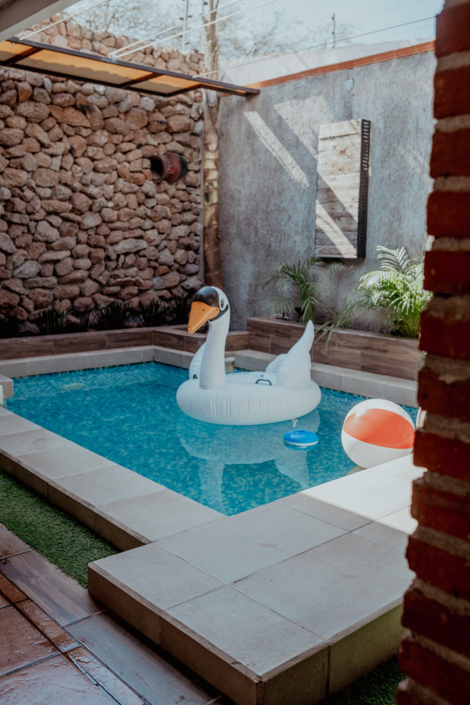 Área de alberca con techo retráctil, ideal para cerrarse en días fríos y disfrutar de una alberca techada.